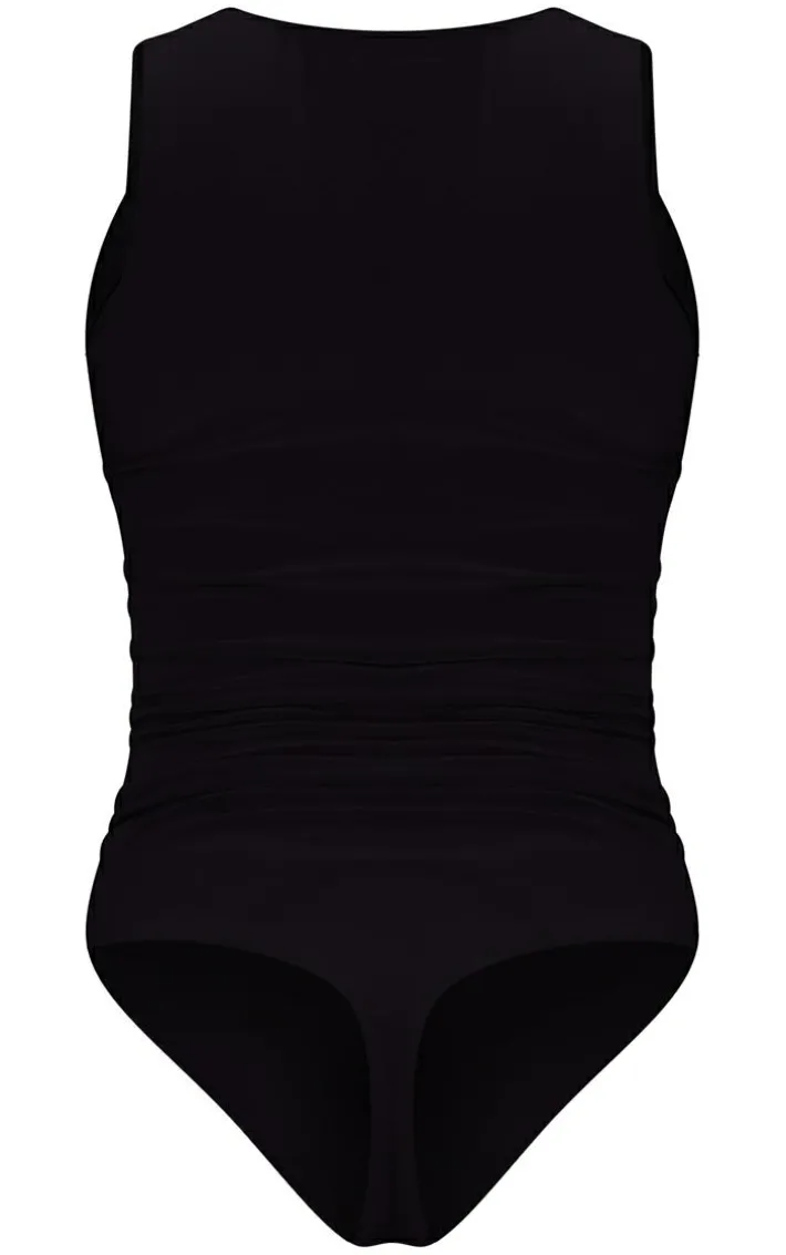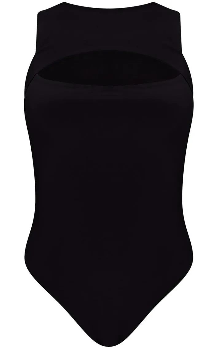 Take your new season look to the next level with this bodysuit. Featuring a black slinky material with a cut out front design and a figure-worshipping fit. Style with wide leg bottoms and clear heels for the ultimate weekend-ready fit.