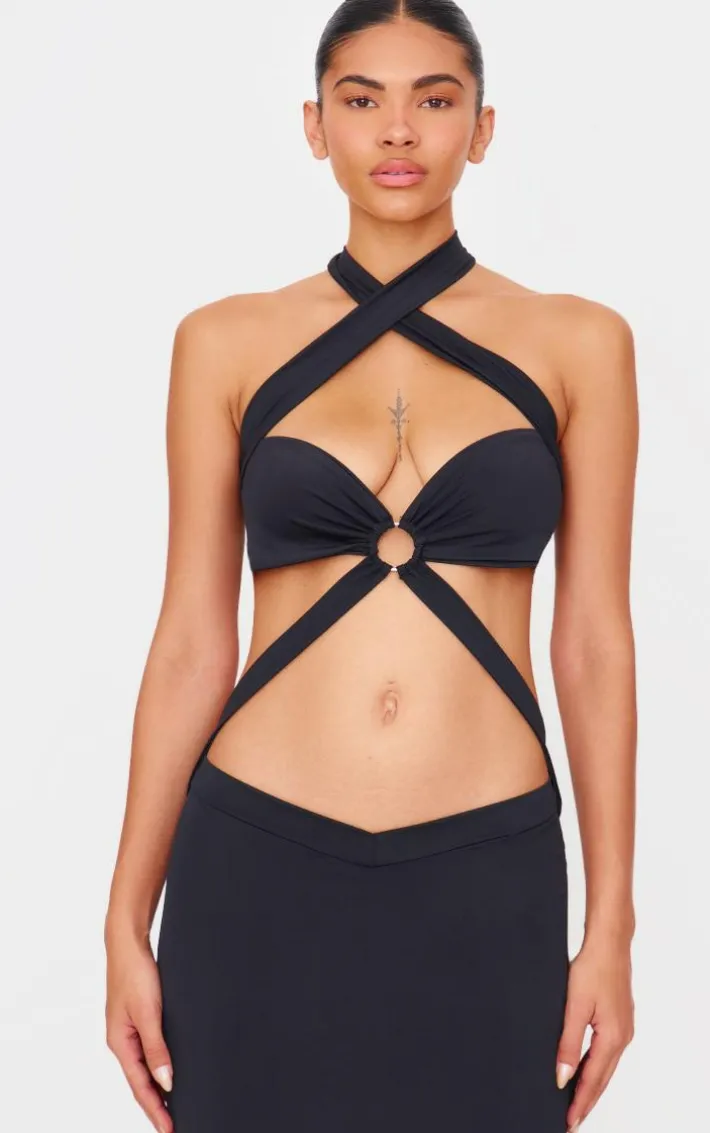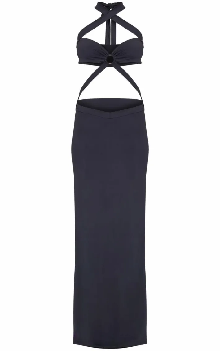 Turn heads for all the right reasons in this black slinky extreme cut out ring detail cross neck maxi dress. Brought to you in a black hue slinky material with an extreme cut out design, ring detail and cross neckline, this maxi dress is all the new you need. Style with heels and simple accessories for a look like no other.