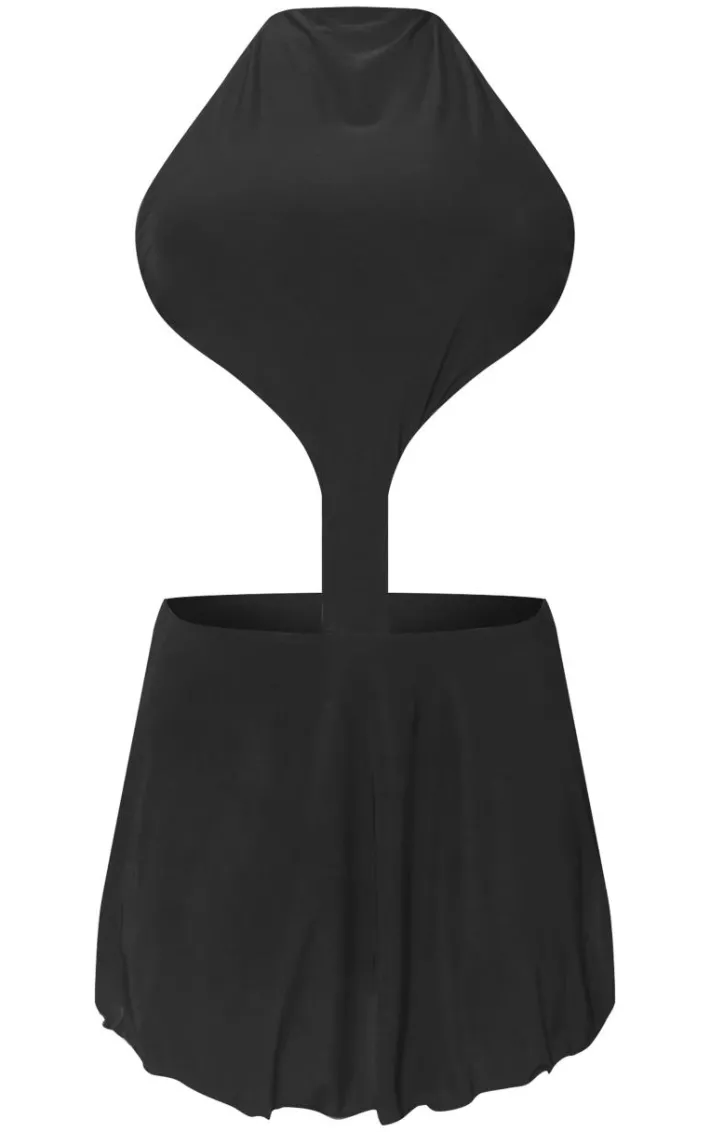 This black slinky high neck cut out shift dress is here to solve all of your weekend wardrobe dilemmas. Brought to you in a black hue slinky material with a high neckline and a cut out design, how can you resist? Style this shift dress with heels and gold accessories for a look that will have all eyes on you.
