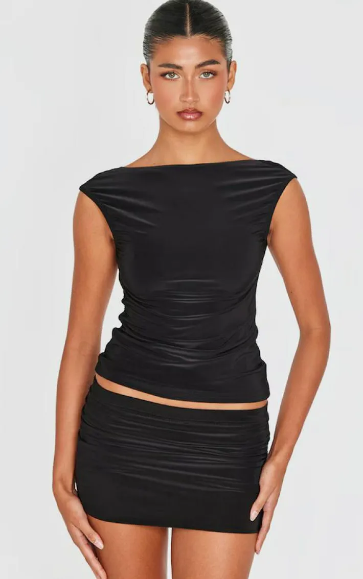 Take your weekend look to new heights with this black slinky low rise mini micro skirt. Made from a black slinky material with a low rise design and a mini length, what’s not to love? Wear this black skirt with the matching hue top and high heels for a look we’re loving.