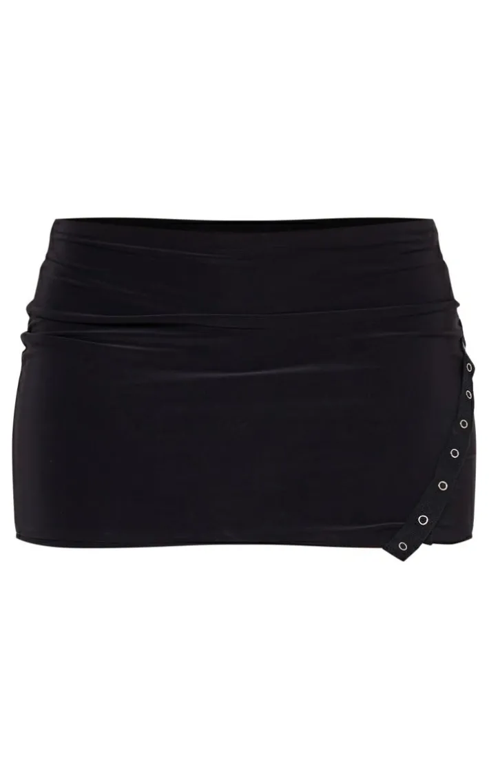 This black slinky low rise split hem eyelet detail micro mini skirt is here to banish any of your what to wear dilemmas. Brought to you in a black slinky material with a low rise, an eyelet design and a micro mini length, we can’tget enough. From start to finish this mini skirt will have you looking totally on-trend. For a next-level look simply style with the matching top, high heels and accessories for a look that will have you setting trends wherever you step foot.
