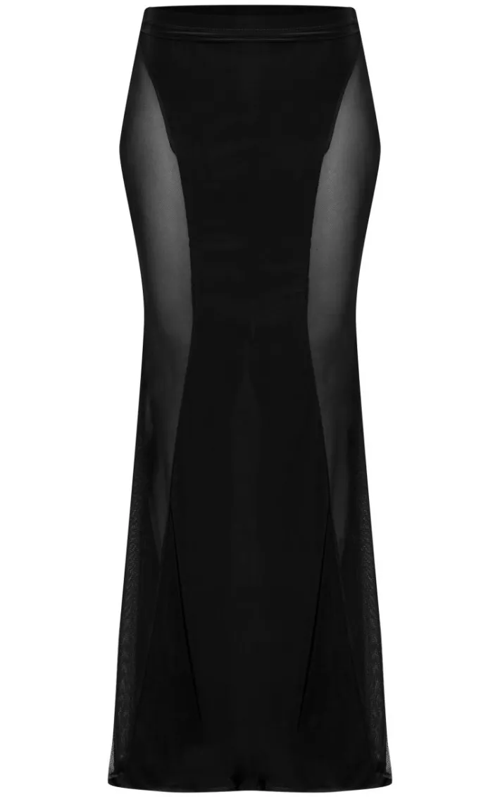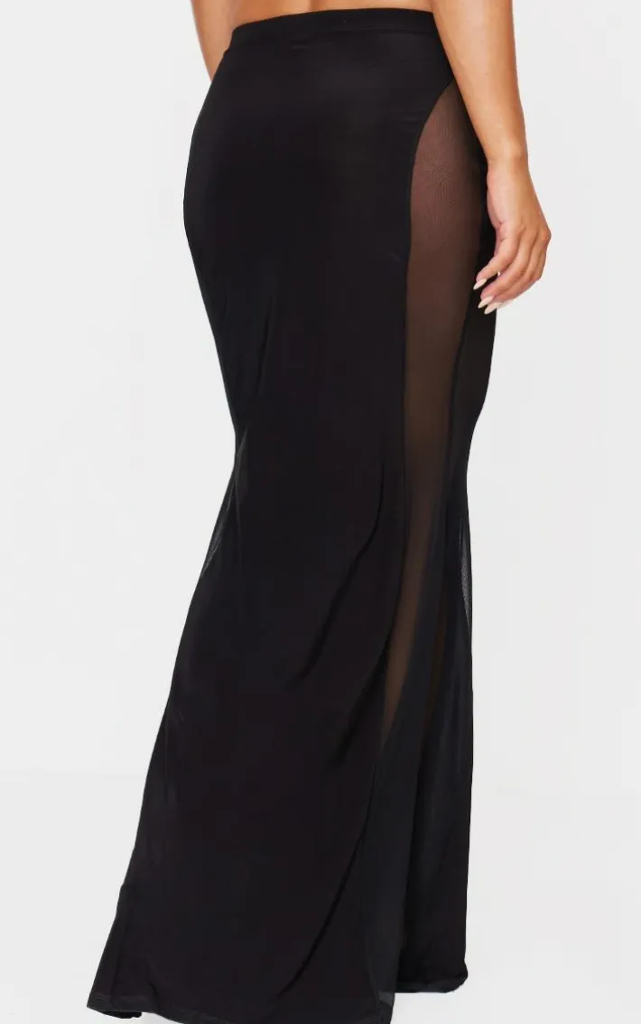 The new you starts here with this black slinky mesh detail maxi skirt. Brought to you in a maxi skirt length, with a black slinky material and side mesh panel detailing, you’ll be ready for any event this season brings. Team with a matching black top, clear toe heels bold silver jewelry to earn all the compliments.