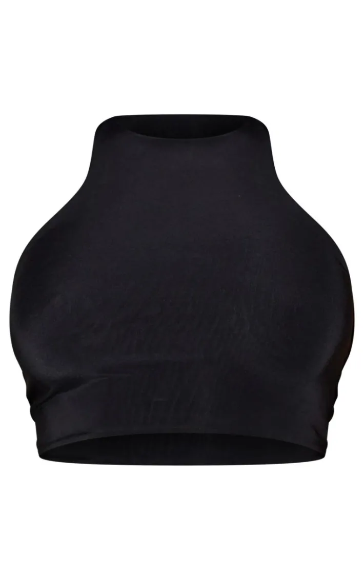 Nail major trends with this black slinky racer crop top. This crop top is brought to you in a black slinky material with a racer neck and a cropped length, what’s not to love? This crop top is perfect for any occasion. Style this crop top with a maxi skirt box-fresh kicks and accessories for a vibe like no other.