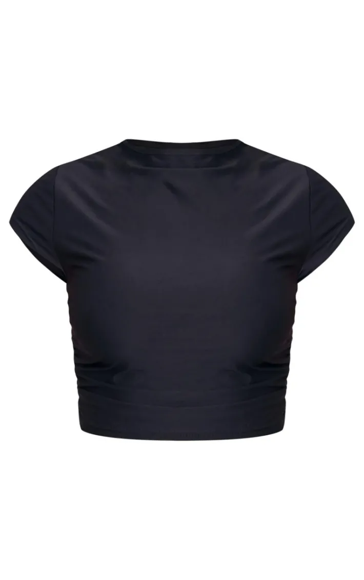 Your basics collection is calling out for this black slinky ruched detail crop top. Brought to you in a black slinky material with a ruched detail and a cropped length, what more could you want? This crop top is perfect for those weekend plans and beyond. Team with a pair of oversized jeans and your go-to heels for a fool proof finish like no other.