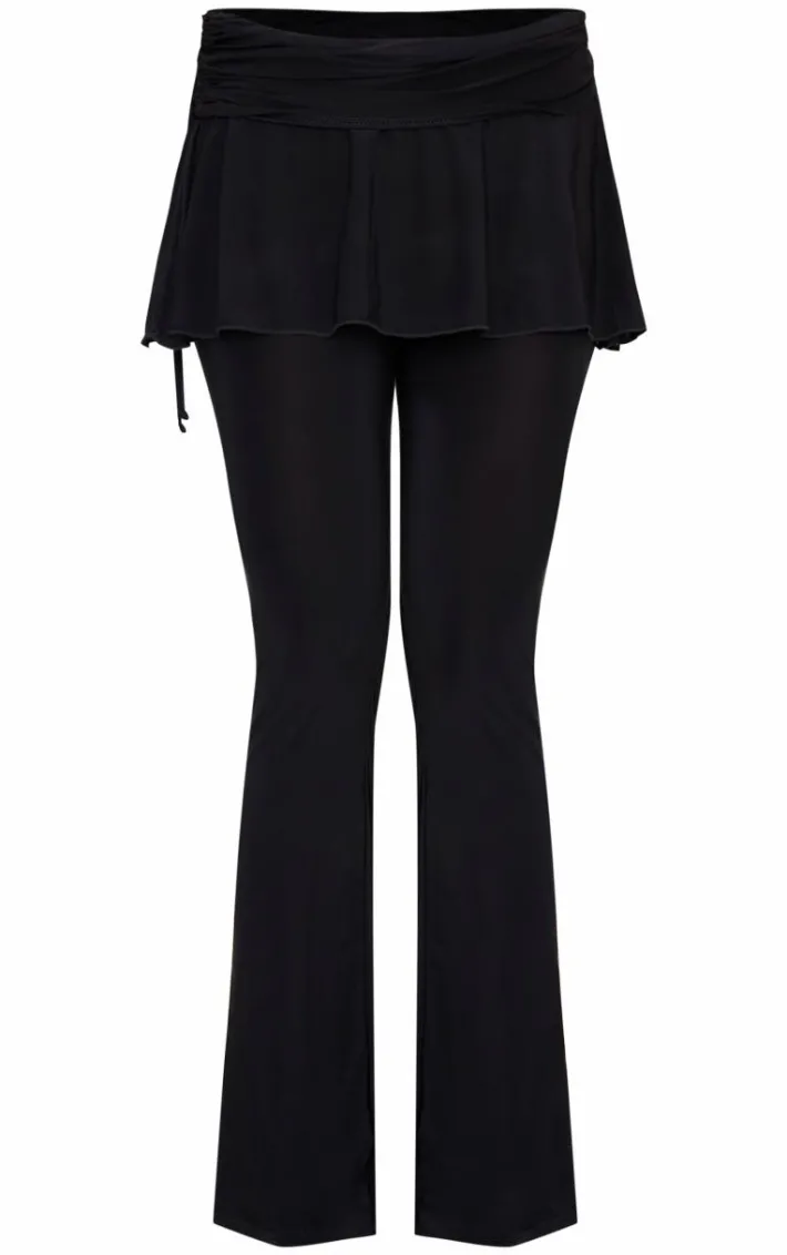 Turn heads in these black slinky skirt overlay flare pants. Brought to you in a black slinky material with a skirt overlay design, we are obsessed. These pants have a flare fit we just can’t get enough of. Team with your fave accessories and a pair of heels to finish off the look.
