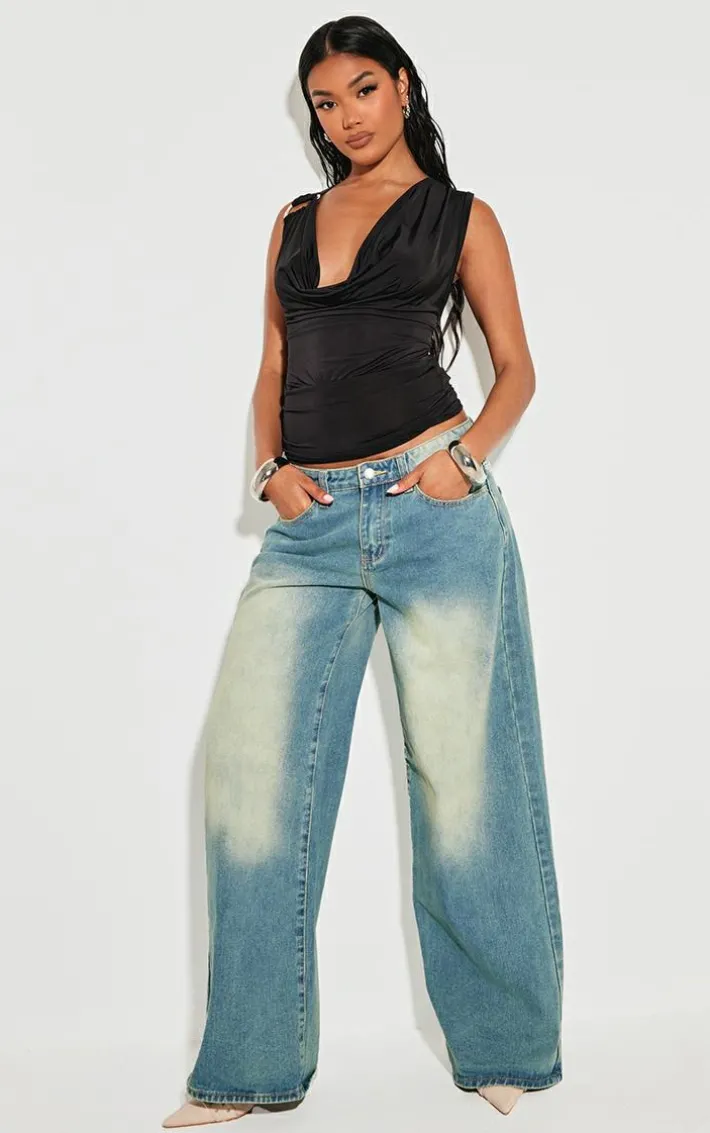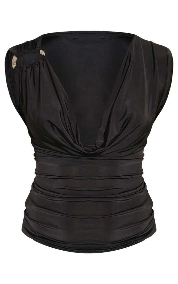 Unsure what to wear for your next big night out? We’ve got you covered with this black slinky trim detail cowl long top. Made with an irresistible black slinky fabric, with a silver loop trim feature and a cowl neck cut, you’ll be stealing all the stares. Style this long top with wide leg jeans, heels and a chunky silver bangle to complete the look.