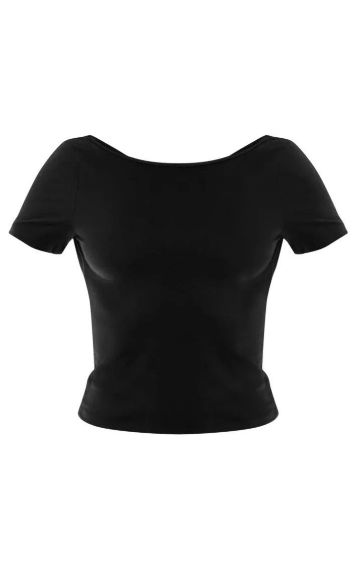 Swap your usual black tee for this black snatched sculpt cap sleeve tee. This unreal top is made from a black sculpted material with a cap sleeve and a backless design, you will have hearts racing no matter what. Its longline fit is sure to have you feeling confident this season. Team this snatched sculpt top with comfy leggings and your go-to accessories for a look like no other.