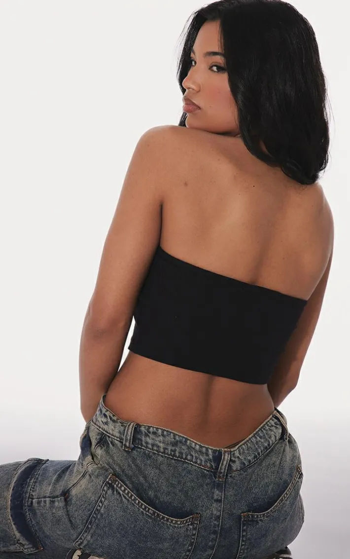 Your new season wardrobe is calling out for this black soft ribbed bandeau crop top. Brought to you in a black soft material with a basic ribbed design, what’s not to love? Its crop length will give you a versatile style like no other. Team with some wide leg pants and your fave hoops to elevate the look even further.
