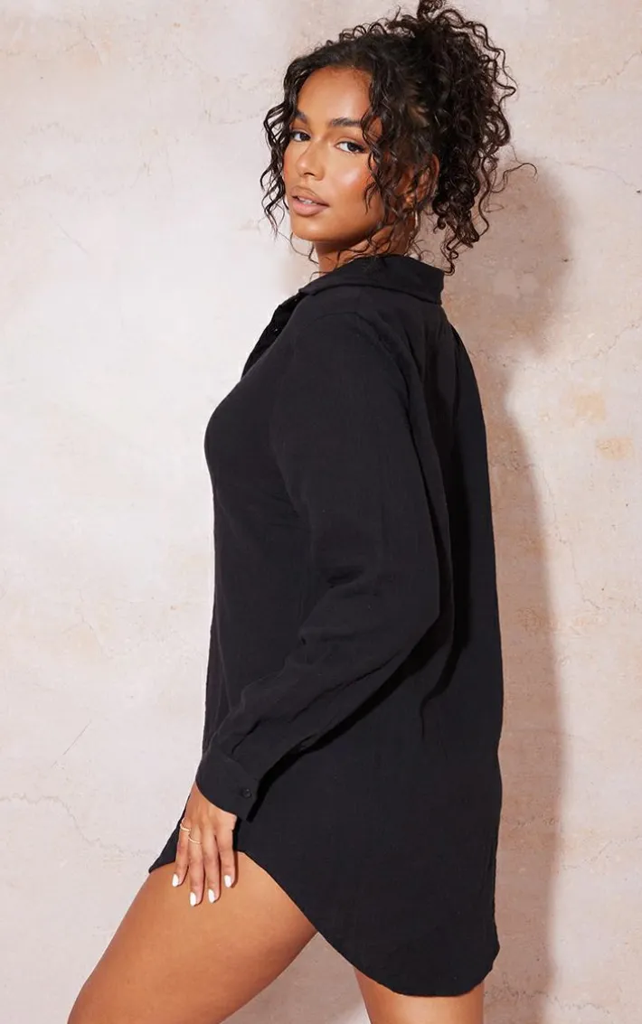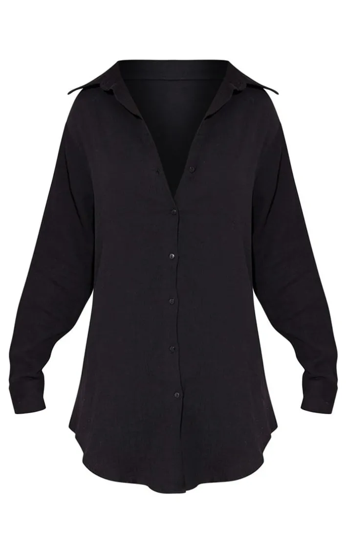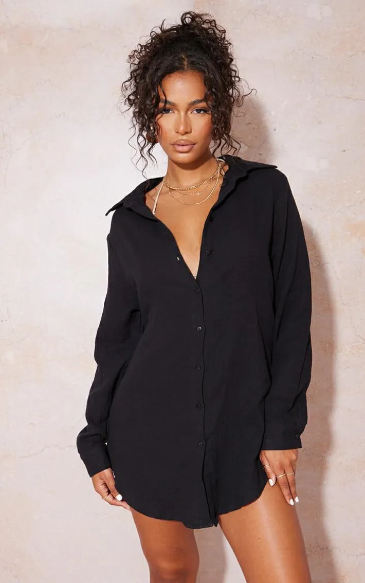 We are obsessing over this shirt for your vacay wardrobe doll. Featuring a black soft crinkle material with an oversized fit, we’re obsessed. Wear over your fave bikini and just add slides and statement accessories to complete the look.