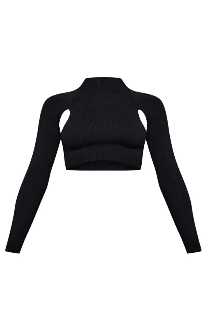 Make this black soft knit cut out crop sweater a staple in your new season wardrobe. Brought to you in a black soft knit material with a cut out design and a cropped fit, how can you resist? Style this crop sweater with cargo jeans, sneakers and a mini bag for an effortlessly chic weekend-worthy look that will have all eyes on you.