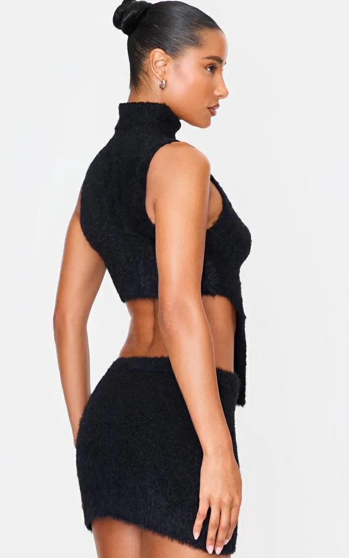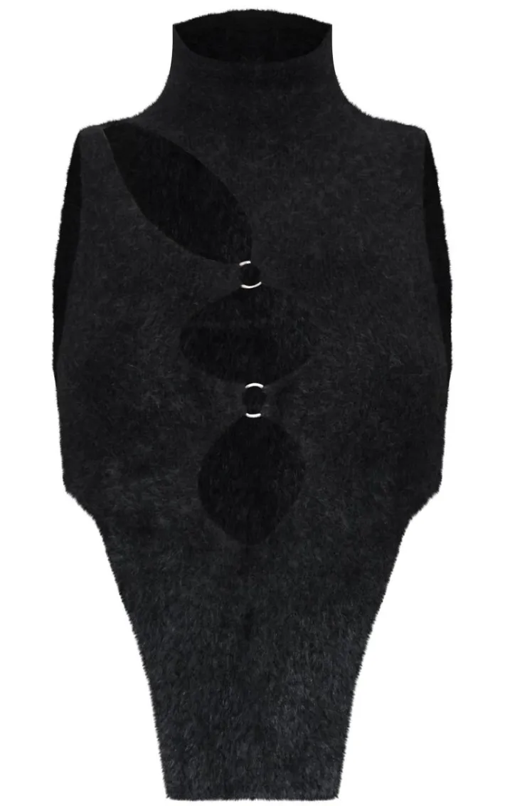 You can never have too many tees in your collection, that’s why we are obsessing over this black soft knit o ring high neck crop top. Brought to you in a black soft knit material with an o ring design and a high neck fit, we are obsessed. This crop top is all you need to make a statement. Team with your fave accessories a mini skirt and a pair of heels to complete the look.