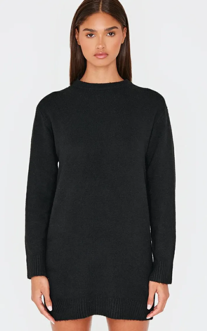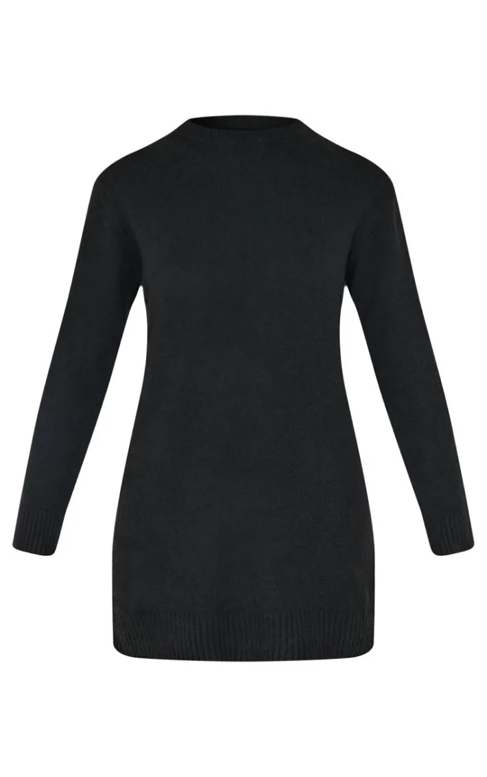 Elevate your basics collection with this black soft knit oversized basic sweater dress. Brought to you in a black soft knit material with an oversized fit, this basic sweater dress is perfect for those day to night looks and beyond. Team with your fave knee high boots and your go-to accessories for a look like no other.