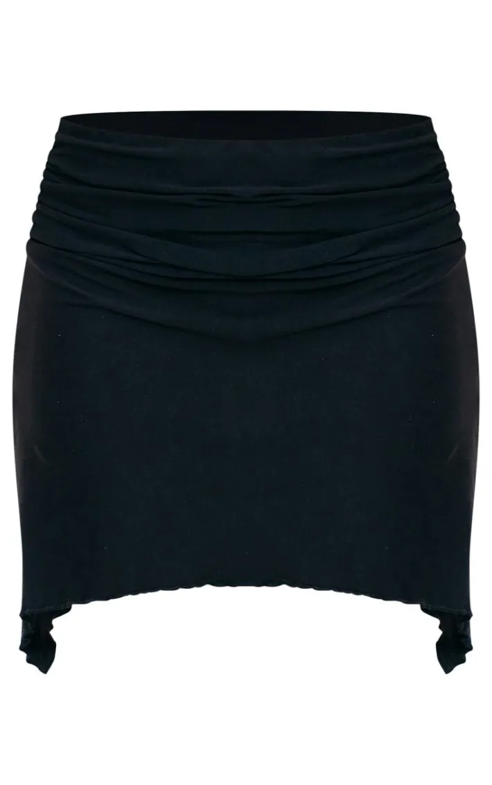 Take the stress out of weekend styling with this black soft touch handkerchief hem mini skirt. Brought to you in a black soft touch material with a handkerchief hem, you really can’t go wrong with this unreal mini skirt. Style with clear strap heels and gold accessories for a look that will have eyes on you for all the right reasons.