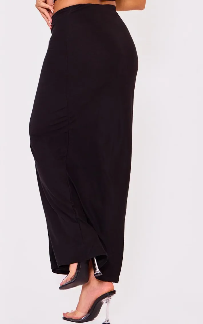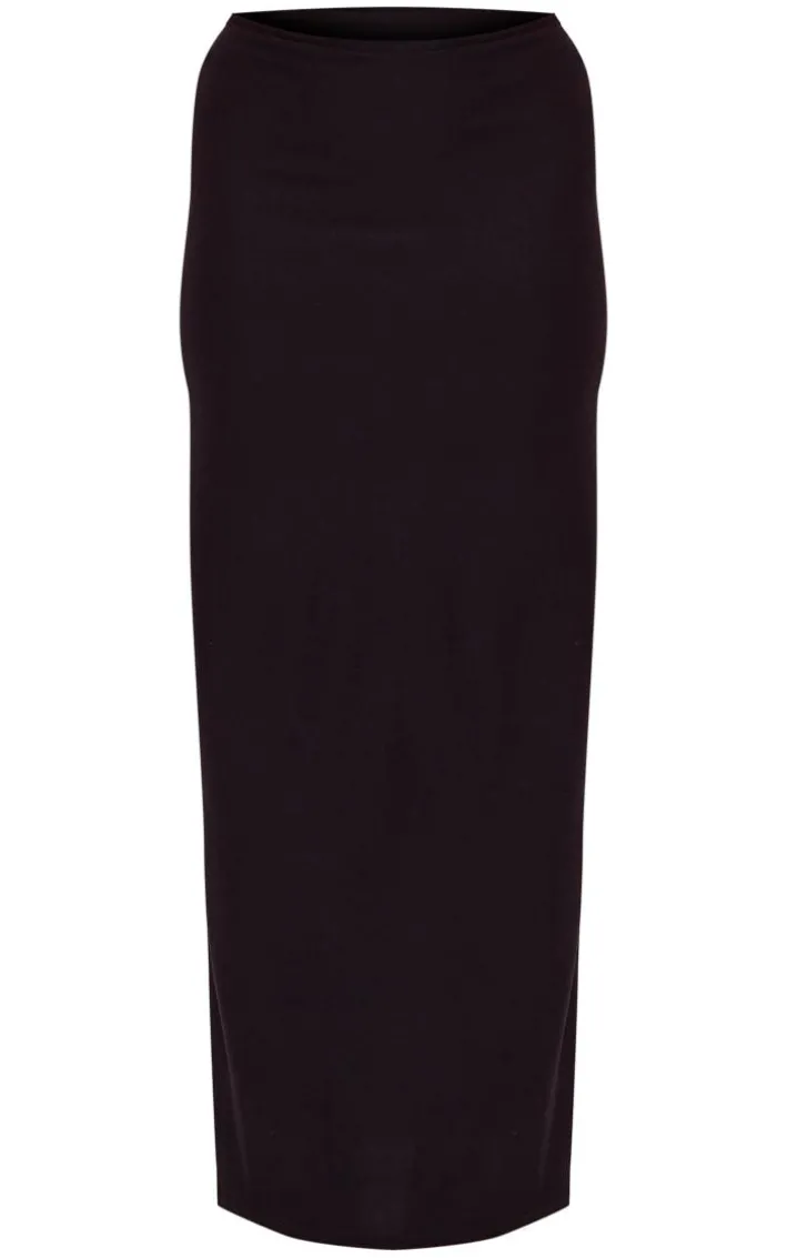 Your weekend wardrobe wouldn’t be complete without this black soft touch low rise maxi dress, it is perfect for your next date night and beyond. With a black soft touch material, a low rise detail and a maxi length, you’ll be adding this maxi skirt straight to your basket. Pair it with a matching hue top, clear slip-on heels and your fave accessories for a luxe finish.