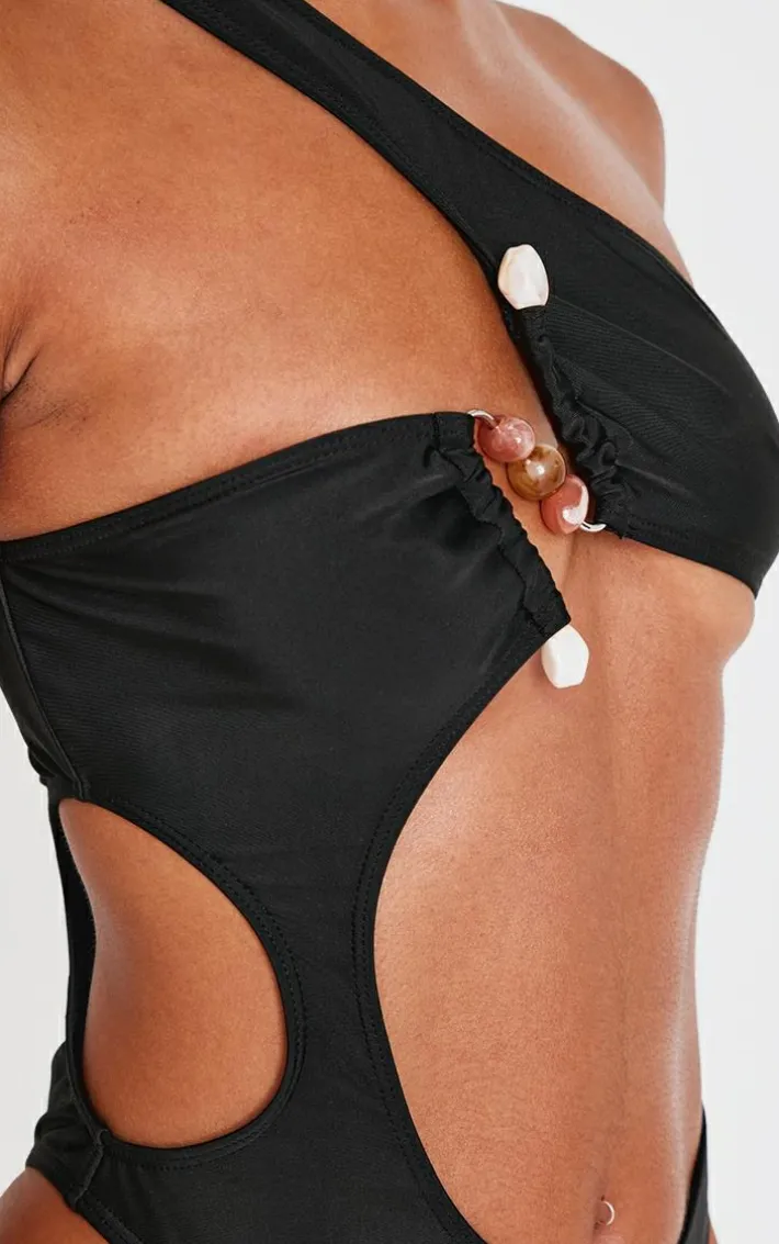 Need a swimsuit for your next trip? This black stone trim cut out swimsuit is perfect for all your new season needs. Brought to you in a black hue swim material with a stone trim design and cut out detail, this swimsuit is a must have. Style with simple accessories and a chic cover up for a look like no other.