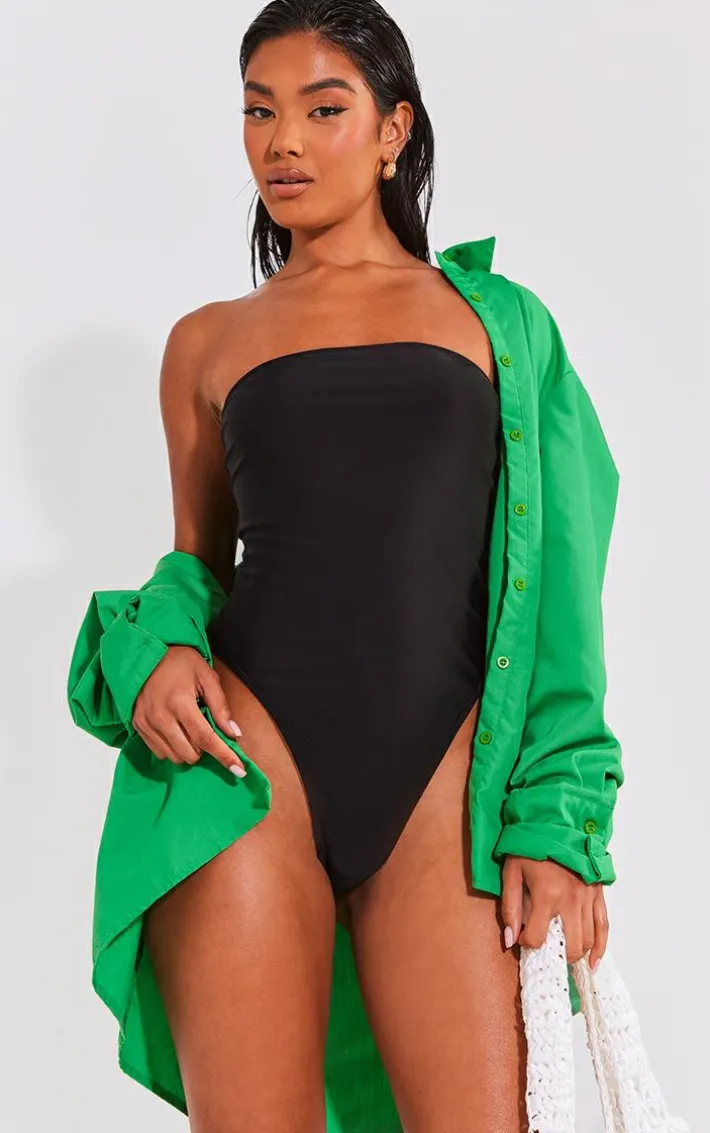 Take your vacay on in style with this black strapless swimsuit. This swimsuit is brought to you in a black hue with a strapless design and a figure-flattering fit, what’s not to love? This swimsuit is sure to have you feeling your best by the poolside. Wear this with a green shirt and your vacay essentials for a vibe like no other.