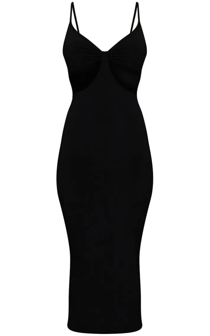 This chic dress is perfect for those special occasions. Featuring a black slinky material with a cut out underbust design, figure-hugging fit and a midi length, we’re obsessed. Style this with strappy heels and gold accessories to complete the look.