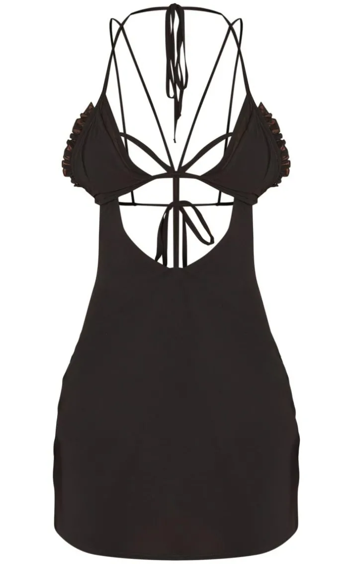 Take your little black dress look to new heights with this black strappy cut out shift mini dress. Brought to you in a black material with a cut out design that’s bringing all the drama and a mini length, how can you say no? Style this black shift dress with strappy heels and statement gold accessories for a look that is sure to make heads turn wherever you go.