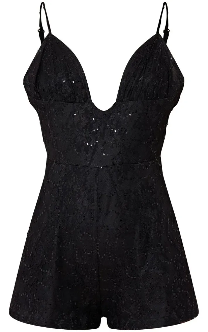 You are sure to be center of attention with this black strappy lace sequin romper. Brought to you in a black lace material with a strappy design, what’s not to love? Its sequin detailing takes any look from 0-100 instantly. Style with a pair of heels and your fave accessories for a look that will earn you all the likes.