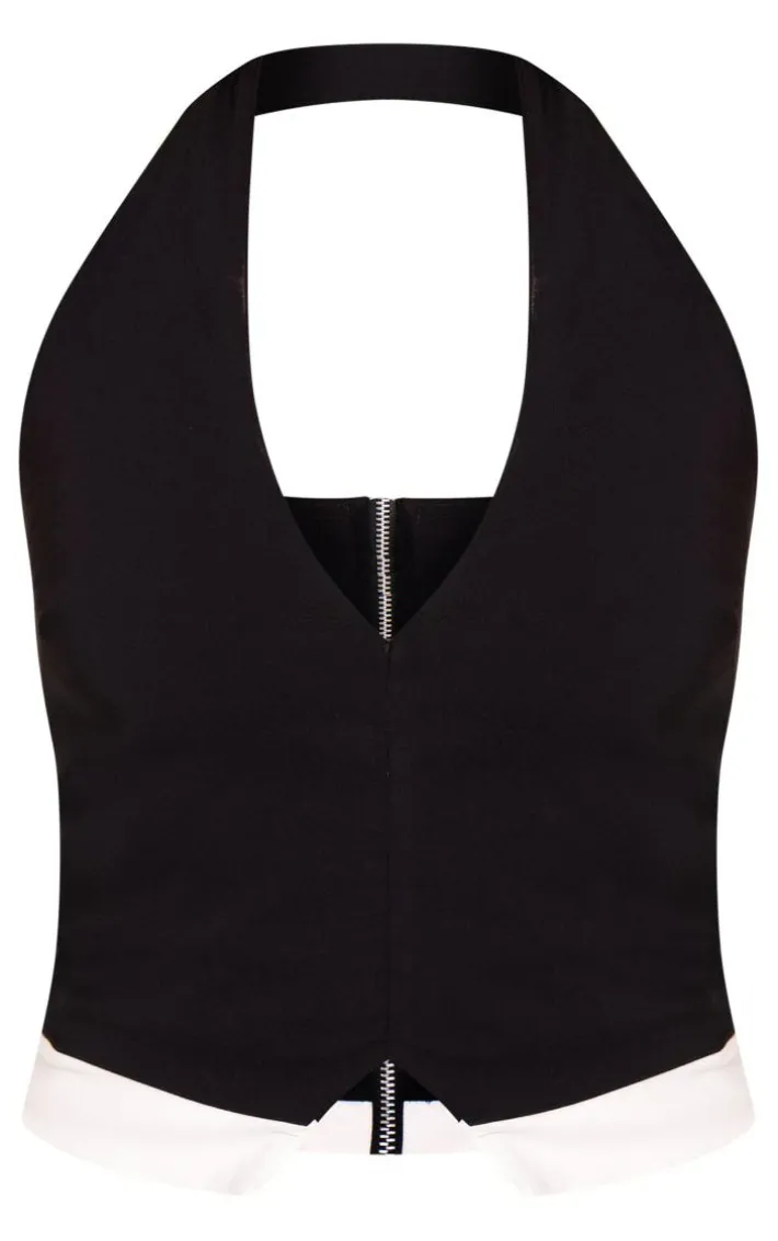 Make sure your weekend look stays on point with this black stretch woven contrast plunge halter neck crop top. Brought to you in a black hue stretch woven material with a halter neck design, a plunging neckline and contrast detailing, what more could you want? Style this crop top with matching hue bottoms, court heels and a cherry red mini bag for an effortless chic weekend-worthy look.