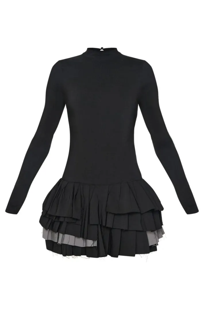 How can you resist this black stretch woven extreme pleated long sleeve shift dress? Brought to you in a black hue stretch woven material with an extreme pleated design and long sleeves, this shift dress is everything you need and more. Team with black boots and gold accessories for a chic finish we can’t take our eyes off this season .
