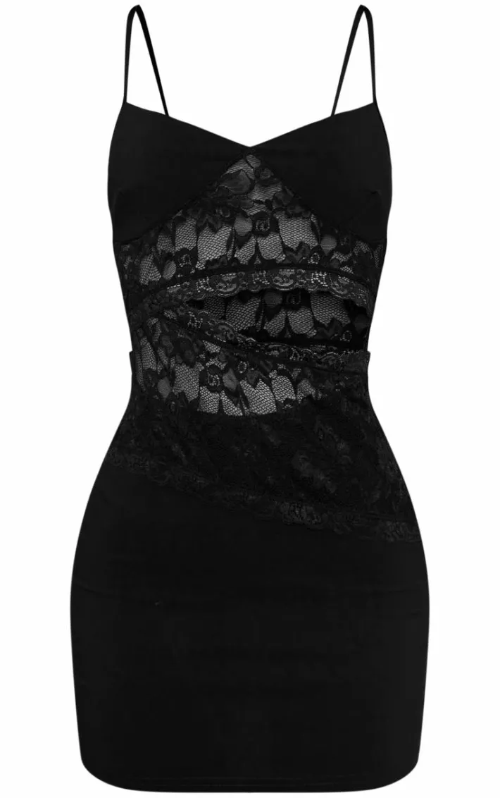 Every needs a little black dress in their wardrobe and this black stretch woven mesh panelling cut out mini dress, your weekend fit is finally sorted. This dress features a black stretch woven material with mesh detailing and a cut out design, what more could you want? Style with slip-on heels and gold hoop earrings for a dreamy date night look.