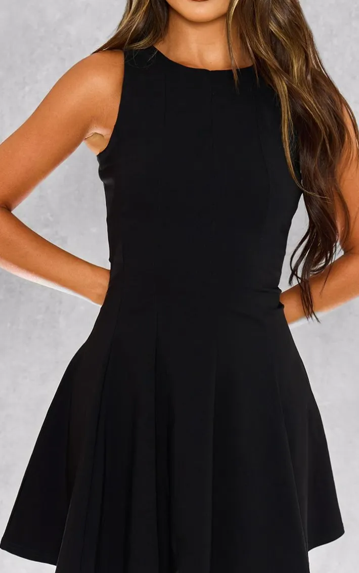Make everyday styling simple with this black stretch woven racer pleated shift dress, we just can’t get enough. This dress features a black stretch woven material with pleat detailing and a flattering fit, it is the perfect versatile piece to dress up or down. Team this woven dress with chunky loafers and a shoulder bag for a look that will have you nailing major trends.