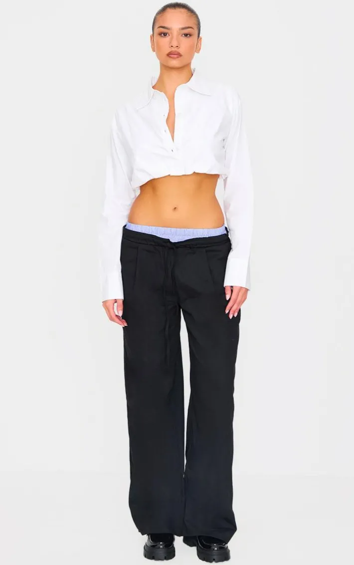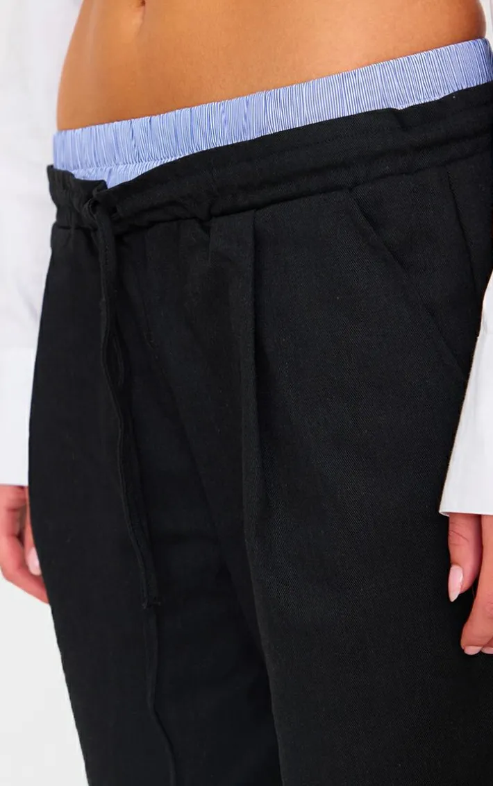 These black striped double waistband drawstring wide leg tailored pants are sure to be a staple in your new season wardrobe. Brought to you in a black hue material with a striped double waistband design, drawstring detailing and a wide leg fit, we are obsessed. Style these tailored pants with a cropped tee and court heels for an effortlessly chic look worthy of your weekend plans.