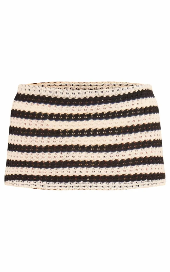 Look effortlessly chic in this black striped textured jersey mini skirt. Brought to you in a black hue textured jersey material with a striped design and a mini fit, what more could you want? Style this mini skirt with your face top, sandals and a tote bag for an everyday look that won’t go unnoticed.