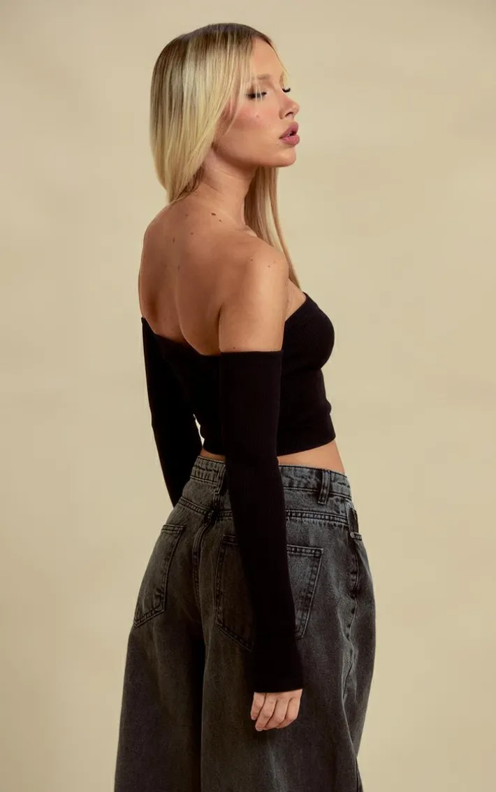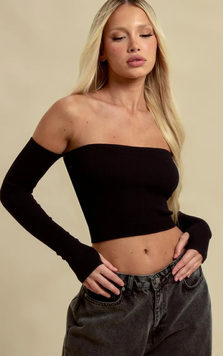 The new season is calling and your wardrobe needs updating with this black structured snatched rib bardot crop top. Its black snatched rib material adds a luxe vibe to your look and its bardot neckline keeps it seriously chic. This crop top is a staple and it has endless styling possibilities. Wear with denim jeans, box-fresh sneakers and everyday accessories for a flawless finish.