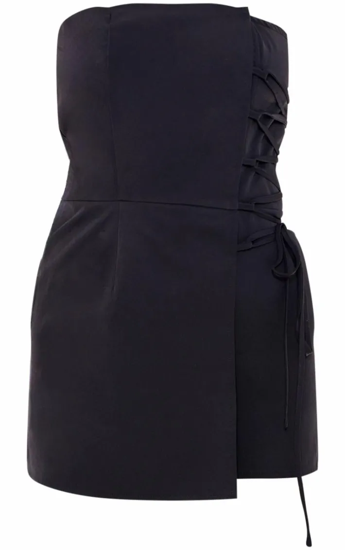 Look all kinds of chic in this black structured woven bandeau skort romper. Made from a black structured woven material with a bandeau neckline and a skort style, what more could you ask for? You are sure to steal all the stares in this black romper. Just add heels and accessories for a flawless finishing touch.