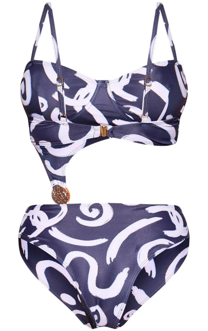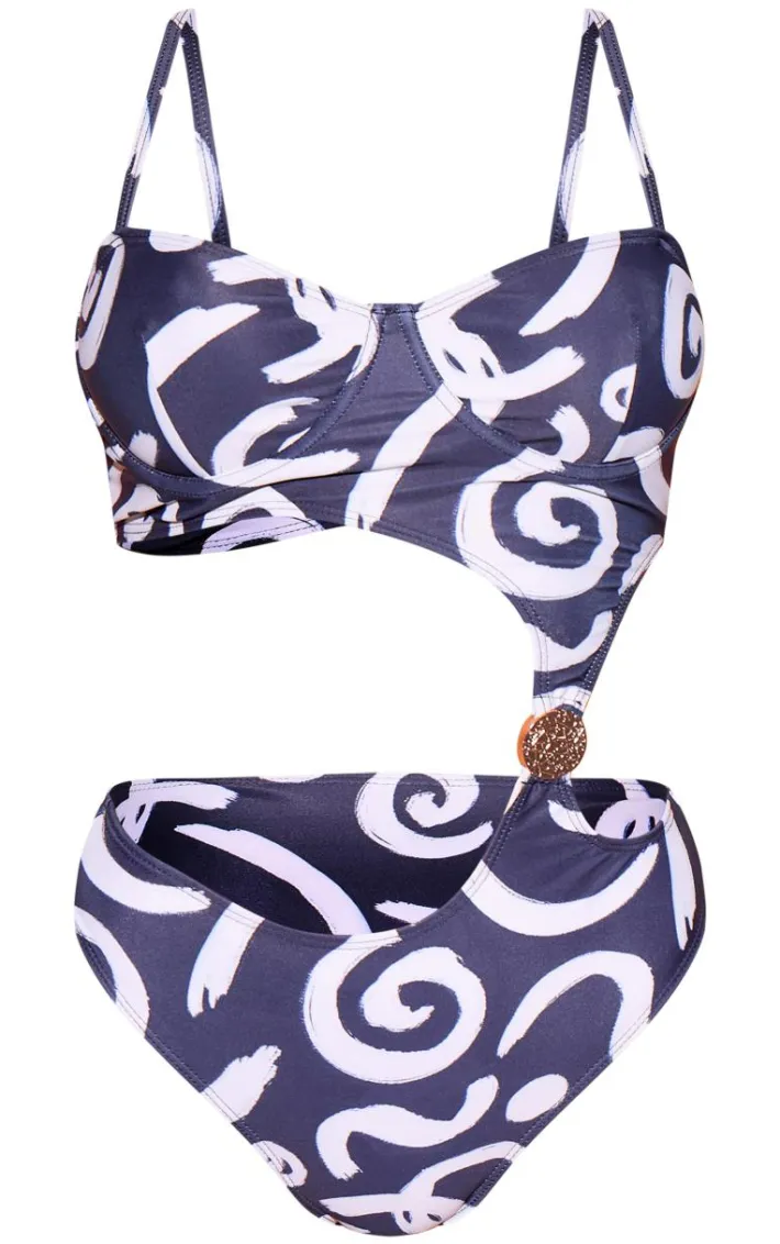 Look the best dressed for any pool-side occasion in this black swirl print underwired cut out swimsuit. Brought to you in a black swirl print material with an underwired cup and cut out detail, how can you resist? Style with gold accessories and some sandals for an Insta-worthy look.