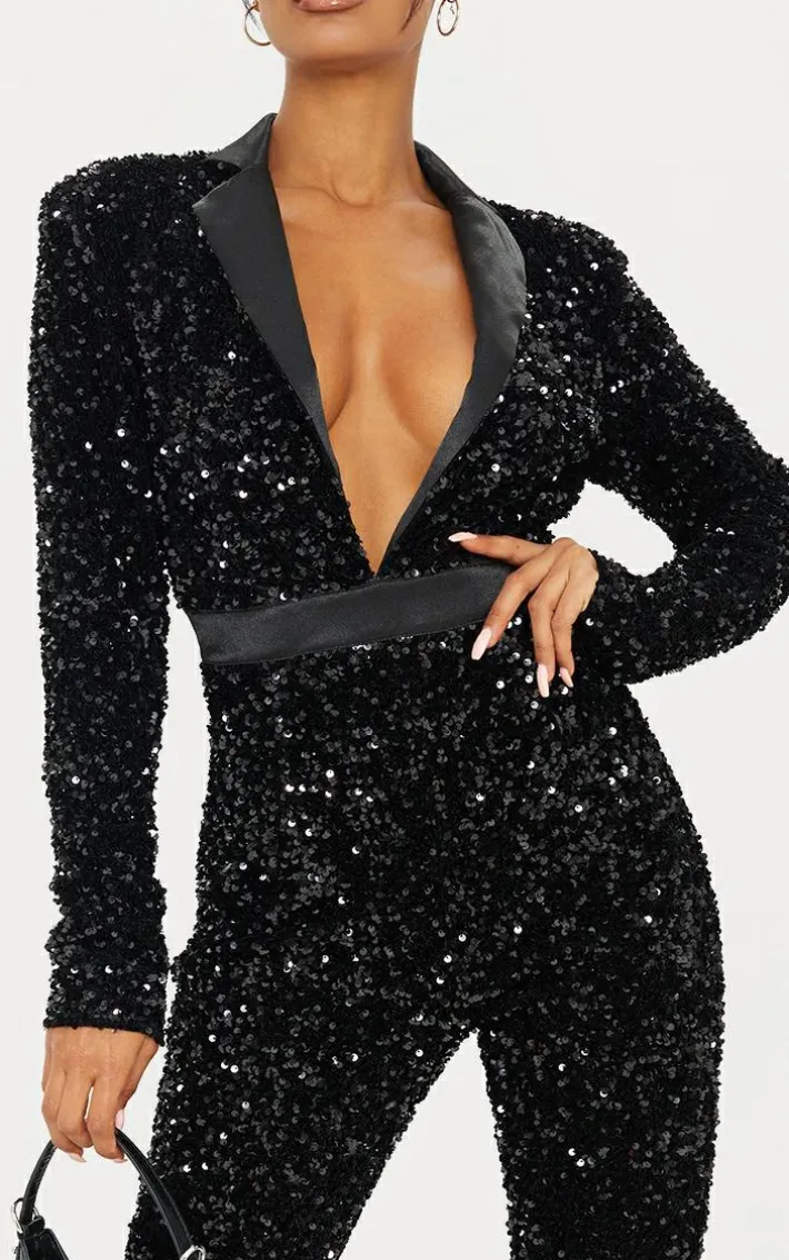 Steal all the stares in this seriously glam jumpsuit. Featuring a black sequin material with a plunging neckline and a tailored fit, we’re obsessed. Just add heels and statement accessories to elevate the look.