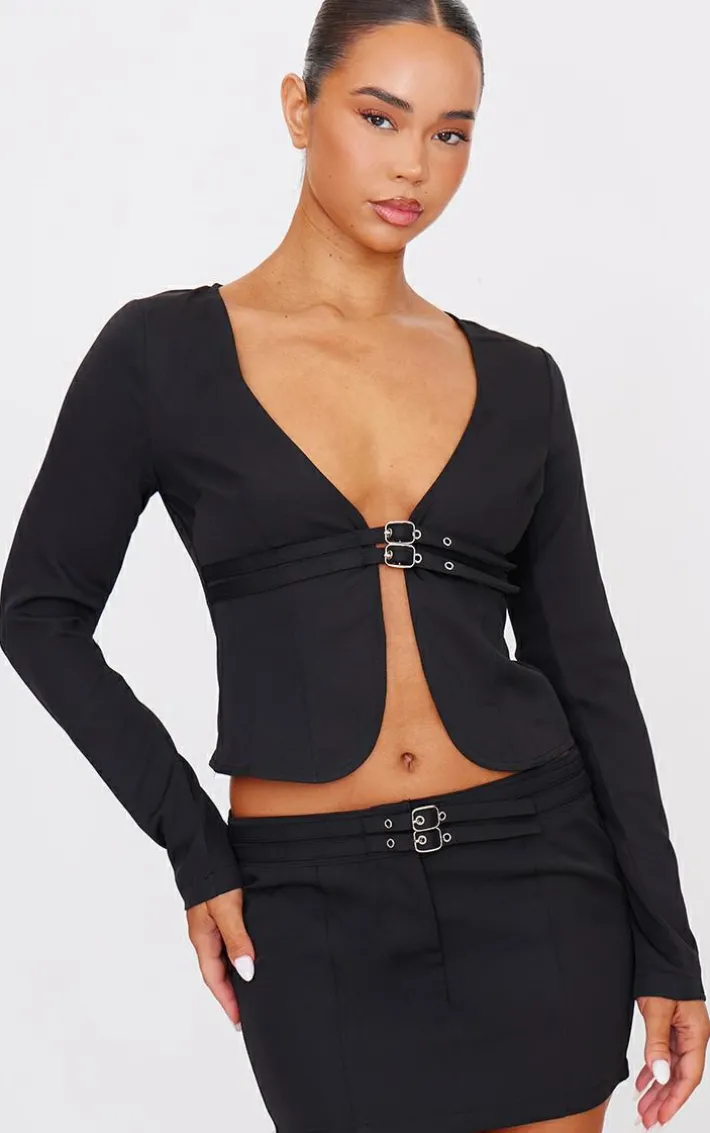 Elevate your weekend wardrobe with this black tailored woven buckle detail long sleeve top. Brought to you in a black hue woven material with buckle detailing and long sleeves, what’s not to love? Style this tailored top with the matching mini skirt, heels and statement accessories for a chic look that won’t go unnoticed.