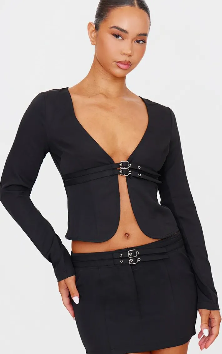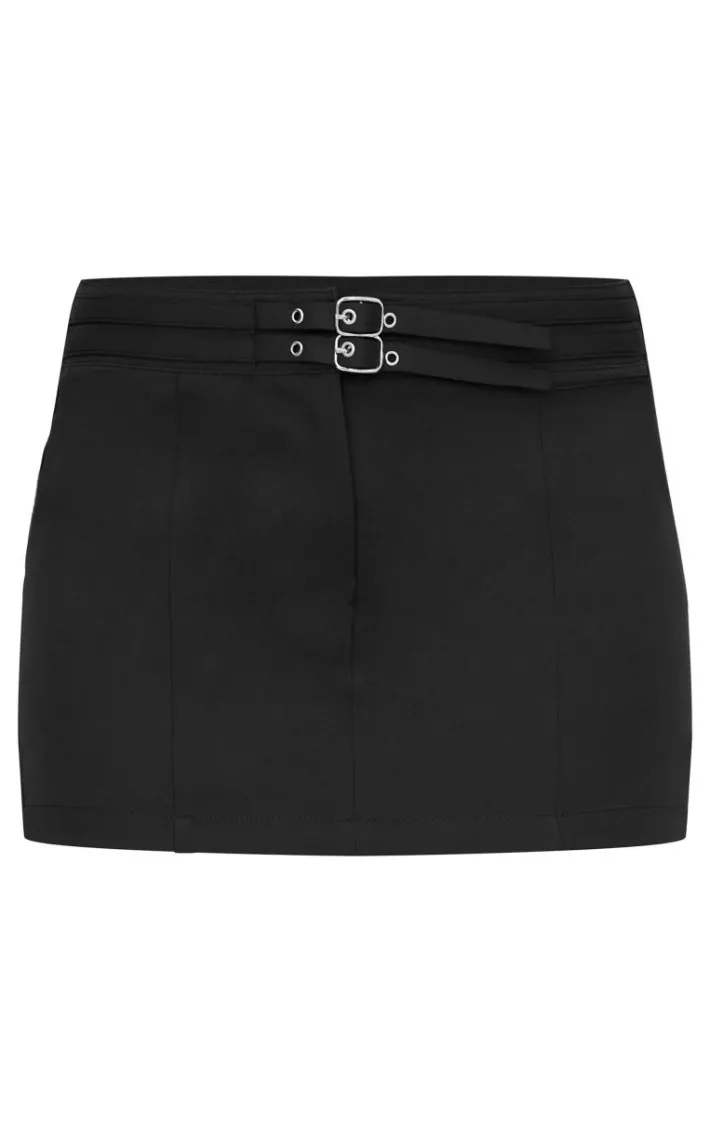 Take your weekend look to new heights with this black tailored woven buckle detail low rise mini skirt. Brought to you in a black woven material with buckle detailing and a low rise design, how can you resist? Pair this mini skirt with the matching top, heels and accessories for a look that is sure to make heads turn.