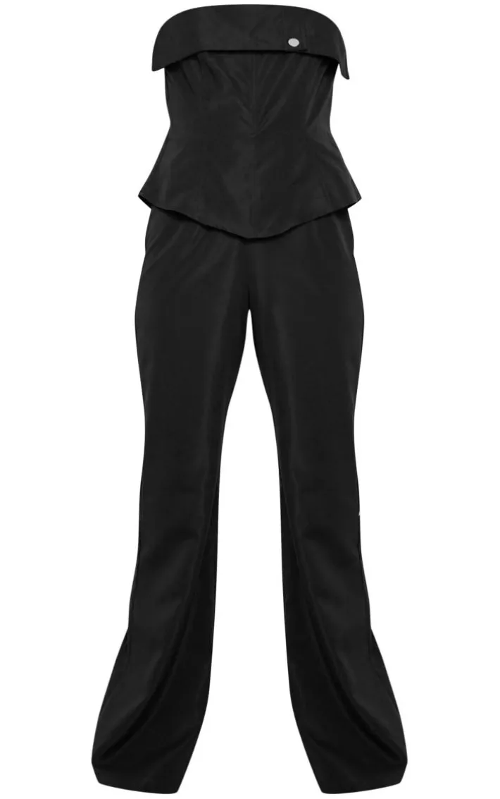 Make everyday styling look effortless with this black tailored woven overlay bandeau jumpsuit. Brought to you in a black hue tailored oven material with an overlay design and a bandeau neckline, what more could you ask for? Perfect for dressing up or down, this tailored jumpsuit is sure to be a staple in your new season wardrobe. Keep it casual and team with sneakers and simple accessories for a fool-proof finish.