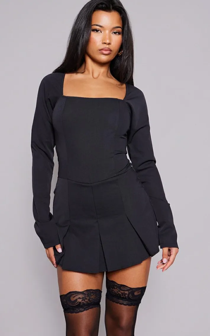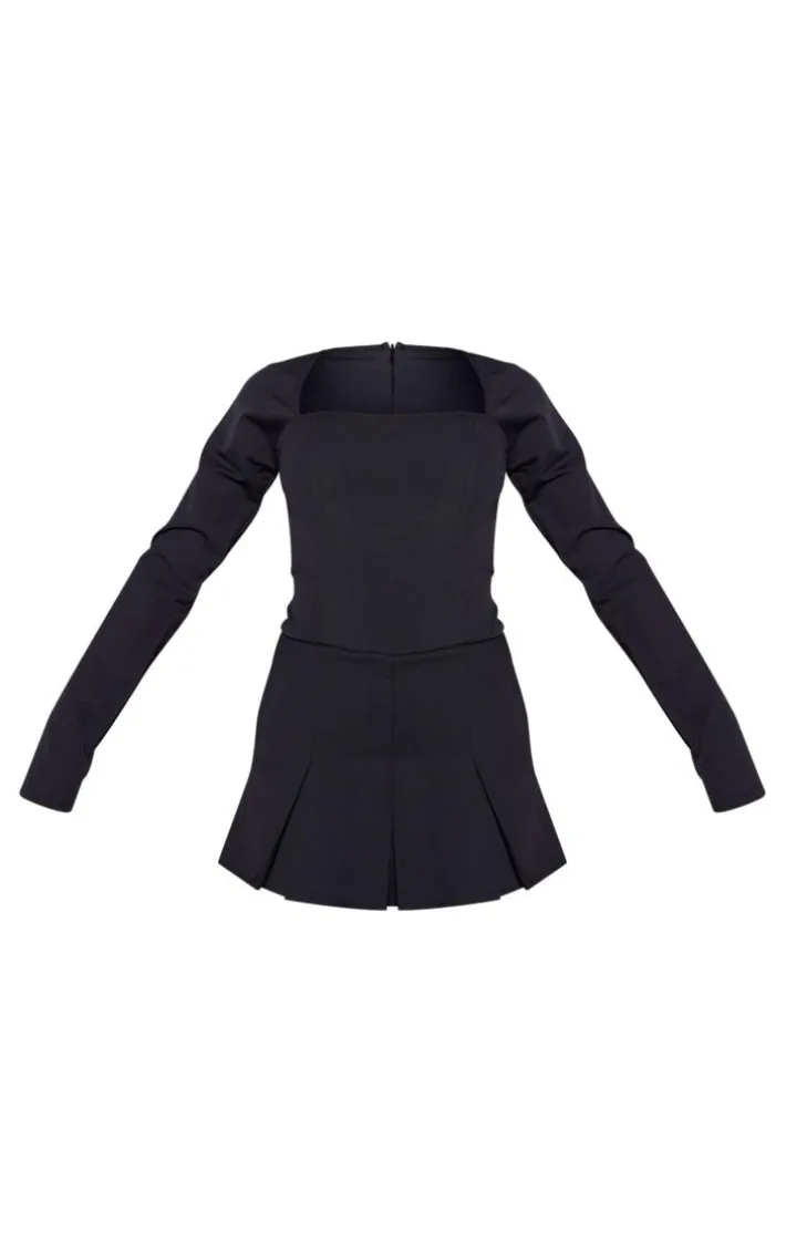 Get ready for the weekend with this black tailored woven square neck pleated skort romper. Made from a black woven material with a square neckline and a pleated design, what’s not to love? With a skort style and a figure-flattering fit, this romper is sure to gain you all the compliments. Team with court heels and a shoulder bag for a fiercely feminine finish.