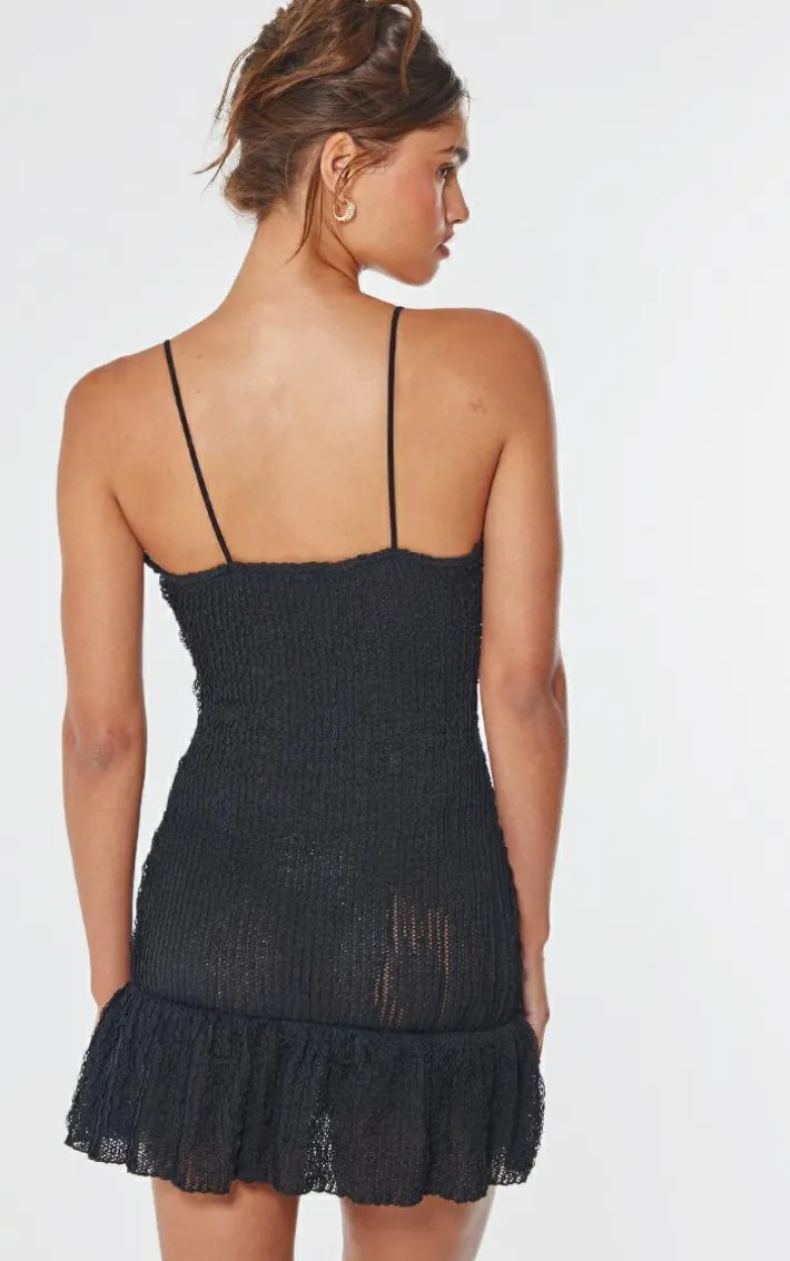 Take your look to the next level with this black textured frill hem cut out mini dress, we can’t get enough. Brought to you in a classic black color, with a textured material and frill hem detail to accentuate the cut out feature, how can you resist? Style with some kitten heels and an updo for the ultimate glow up.