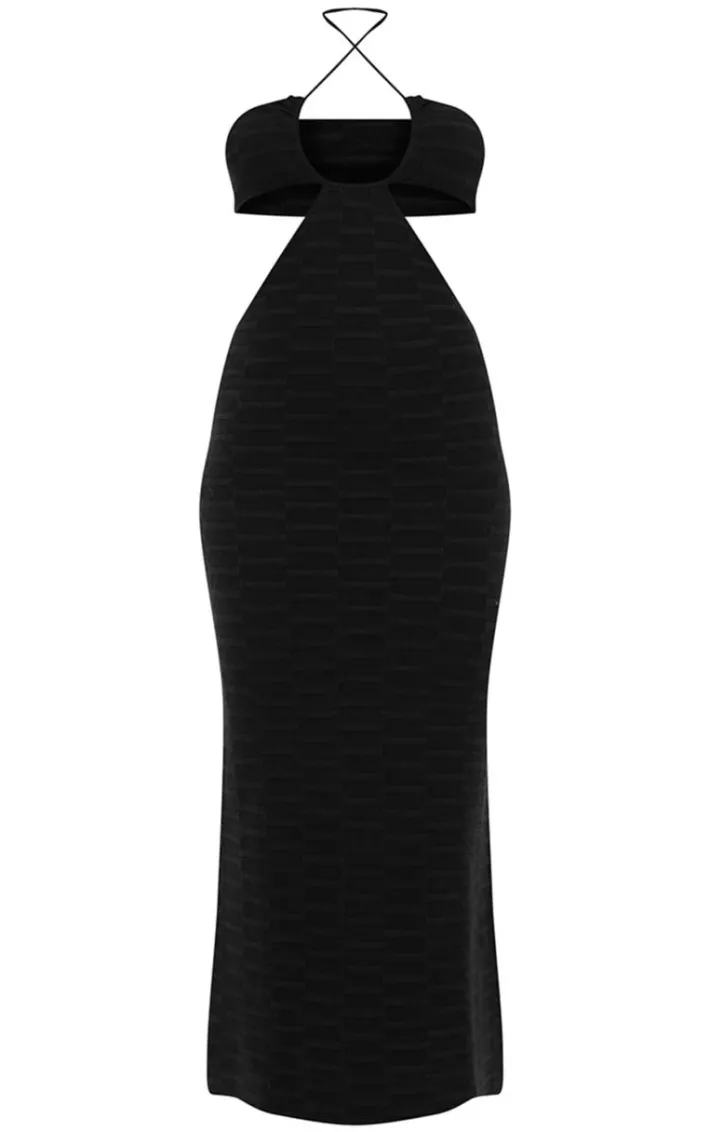 You are guaranteed to have all eyes on you in this black textured knit cut out halter neck maxi dress. Brought to you in a black textured knit material with a halter neckline and a cut out design, we are obsessed. Seriously chic and in a figure-flattering fit, this black dress is sure to become a staple in your weekend wardrobe. Just add heels and gold accessories to complete the look.