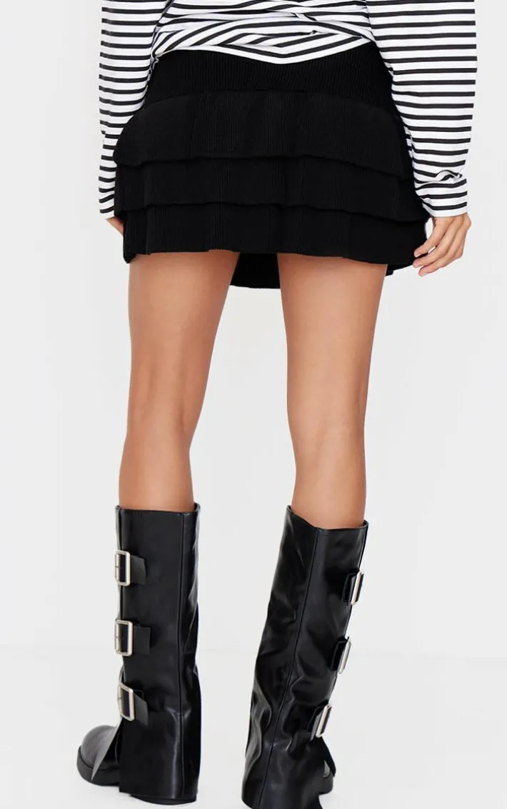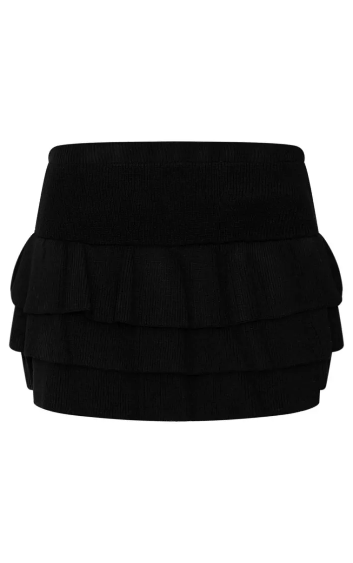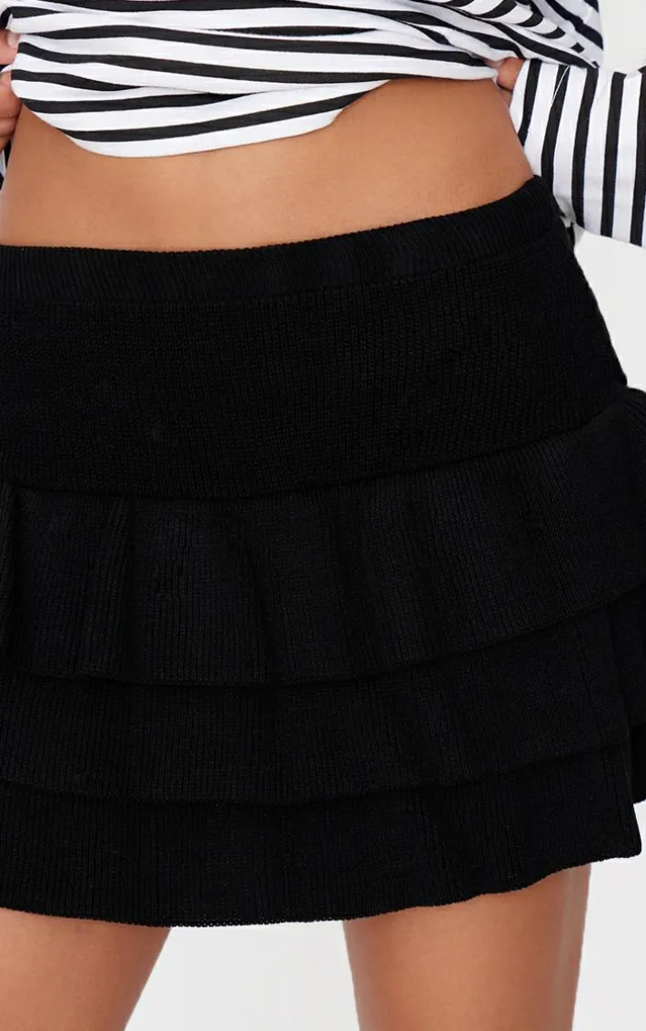 This black textured knit rara mini skirt is sure to be a staple in your new season wardrobe. Brought to you in a black textured knit material with a rara style and a mini length, how can you say no? Style this mini skirt with an oversized tee, chunky boots and statement accessories for a look that will get them talking.