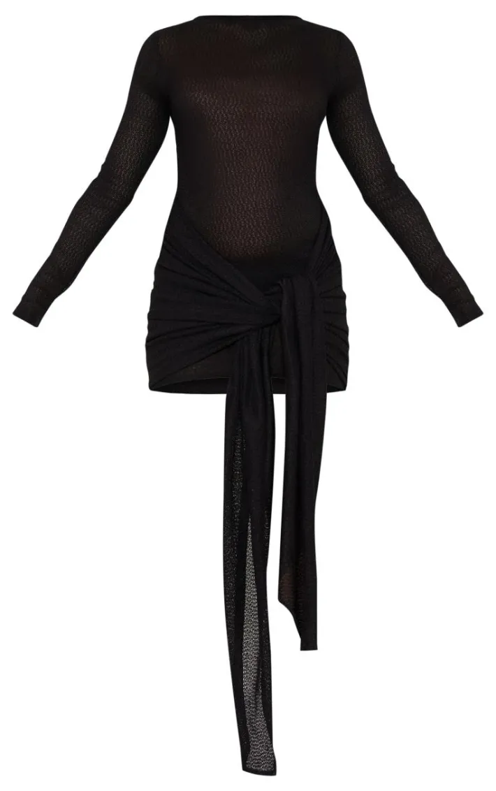 We have got your weekend ‘fit covered with this so stop scrolling and add this black textured long sleeve tie waist mini dress to your basket. Brought to you in a black textured material with long sleeves, a tie waist and a mini length, what more could you ask for? This is at the top of our hitlist this season and is sure to impress. Simply team with your fave heels, gold accessories and a mini bag to nail all the major trends.