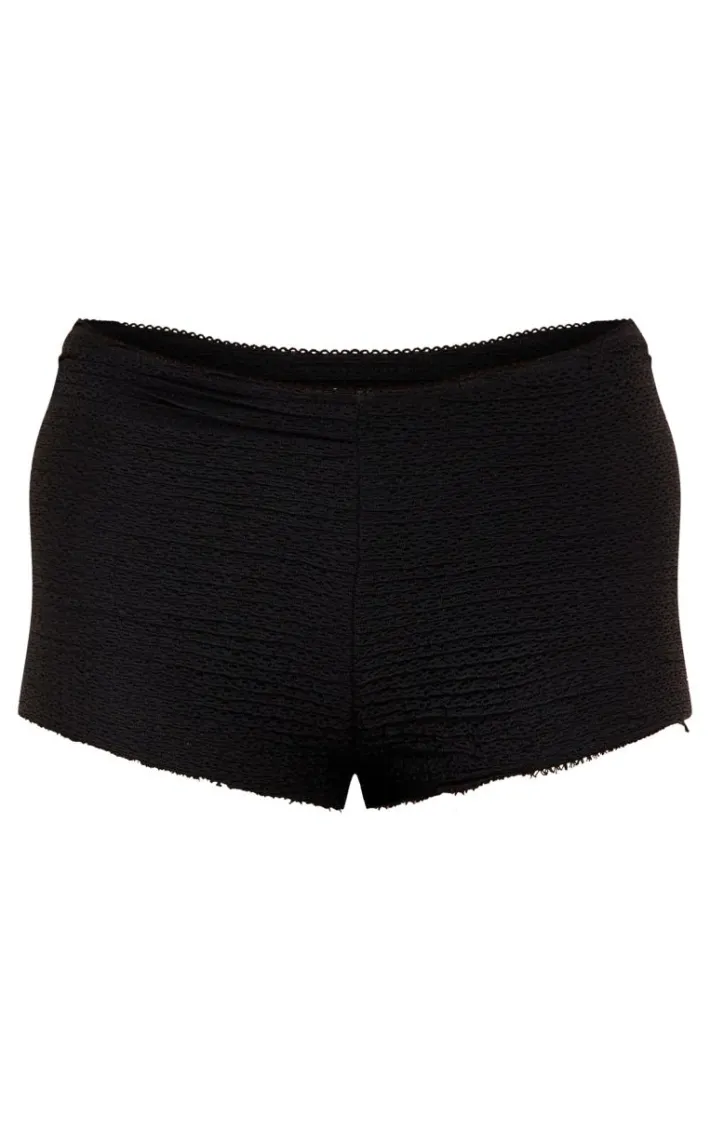 Bring all the drama to your weekend plans with these black textured low rise hot pants. Made from a black textured material with a low rise design and a figure-hugging fit, what more could you want? Style these black hot pants with a matching hue top, western-style boots and a mini bag for a look that is guaranteed to make heads turn wherever you go.
