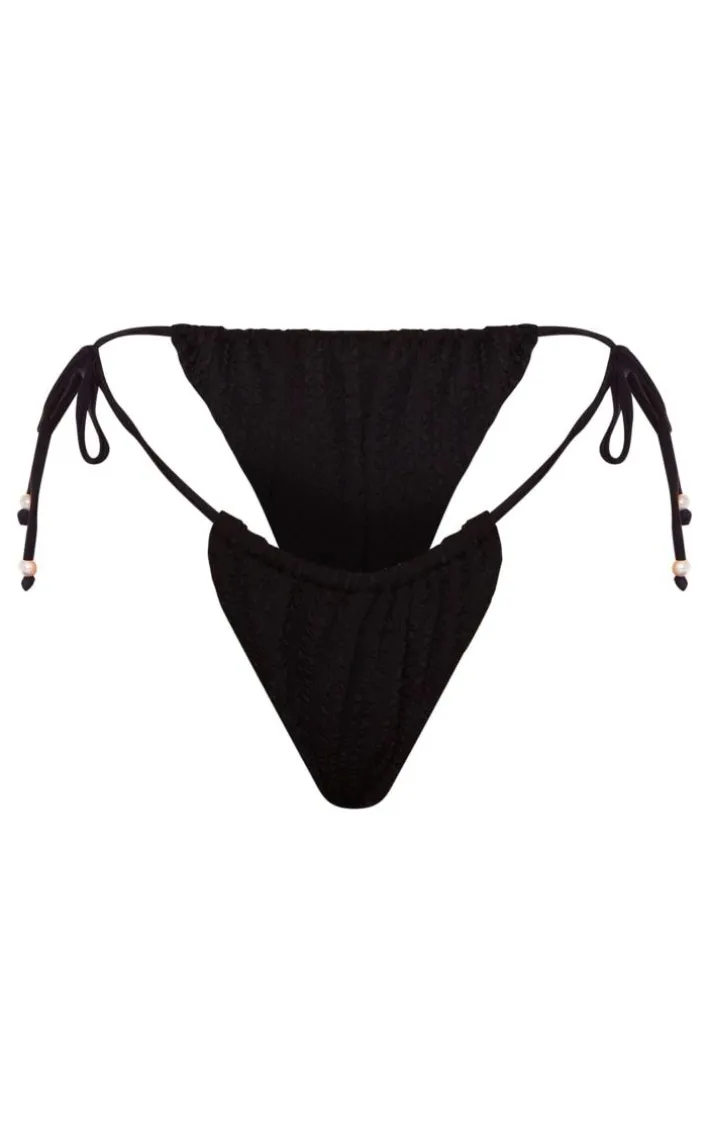 Add some seriously luxe vibes into your new season wardrobe with these black textured pearl trim padded tie side bikini bottoms, they’re a definite yes from us. These bikini bottoms feature a black textured material with pearl trim detailing and a tie side design, what more could you want? Just add the matching bikini top and your fave accessories to elevate the look further.
