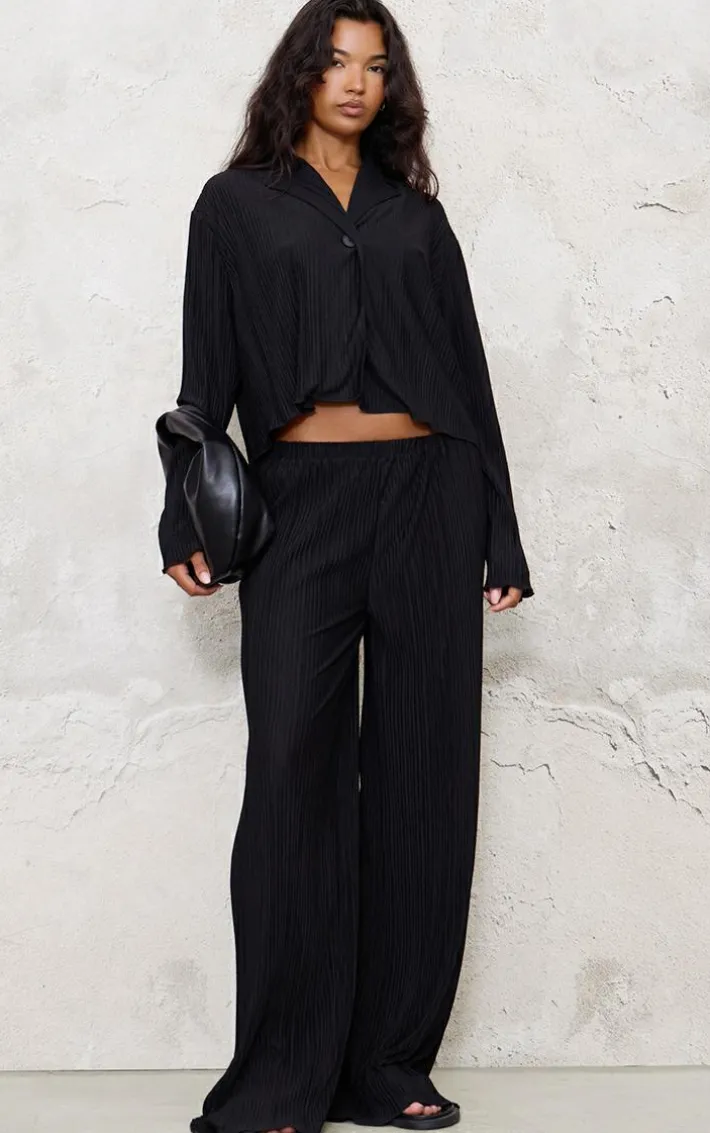 Introducing your new season staple with this black textured pleated button front shirt. Brought to you in a black hue textured material with a pleated design and button front fastening, this shirt will elevate any look. Simple style with the matching bottoms, sandals and a clutch bag for a classy finish guaranteed to earn you all the compliments.