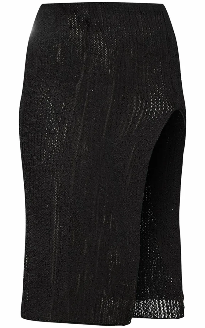 Take your new season wardrobe that extra mile with this black textured split midaxi skirt, you won’t be able to resist. This skirt features a black textured material with a split design and a midaxi length, you’re sure to be earning all the compliments. Pair with the matching top and your fave accessories for a fool proof finish.
