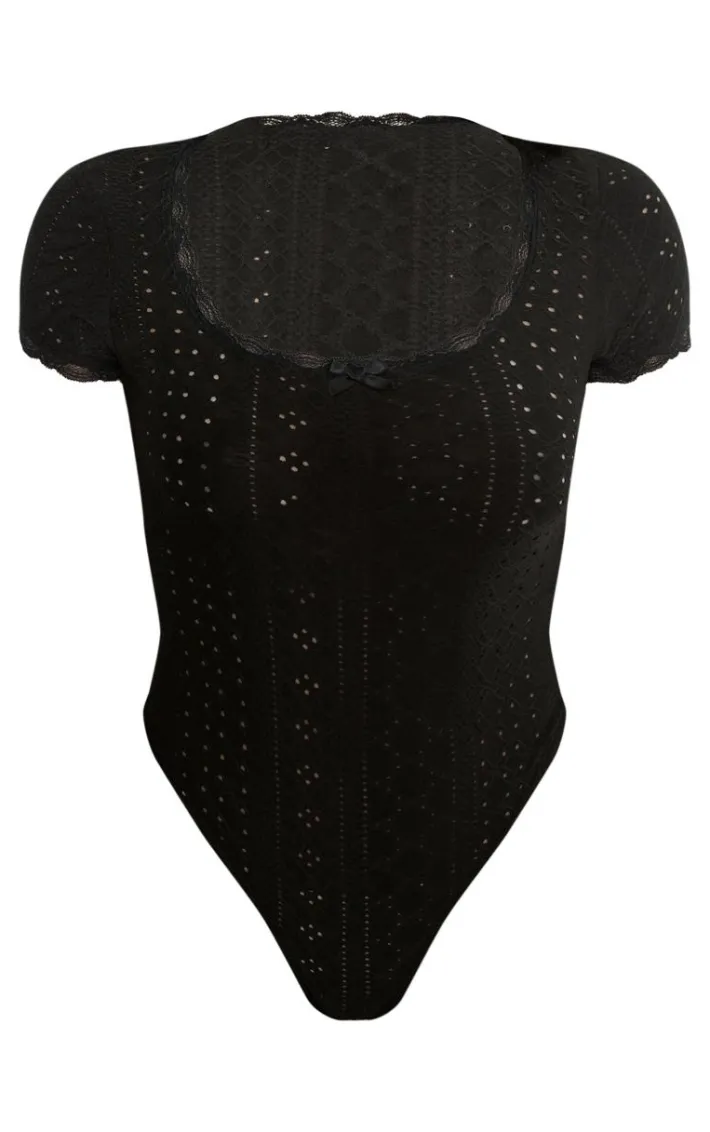 Say hello to your new season staple with this black textured stretch lace trim short sleeve bodysuit. Brought to you in a black textured sheer material with a lace trim and short sleeves, how could you say no? Style effortlessly with denim shorts, box-fresh kicks and accessories for a look that will turn heads for all the right reasons.