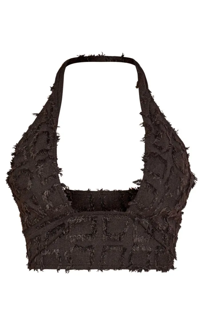 Found some last-minute weekend plans and need an unreal ‘fit? Then we have you covered with this styling staple, a black textured woven halterneck bralet. With a black textured woven material with a halterneck design, we’re obsessed. Work your styling techniques and add the matching mini skirt, high heels and accessories for a weekend-worthy finish that will gain all the likes..