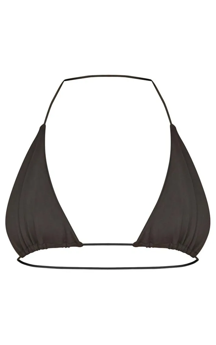 Be pool ready with this black triangle tie black bikini top. Brought to you in a black material with a triangle design giving you a flattering fit like no other. Its tie back makes this bikini top have a versatile fit we are loving. Team with the matching bikini bottoms and your fave accessories to elevate the look even further.