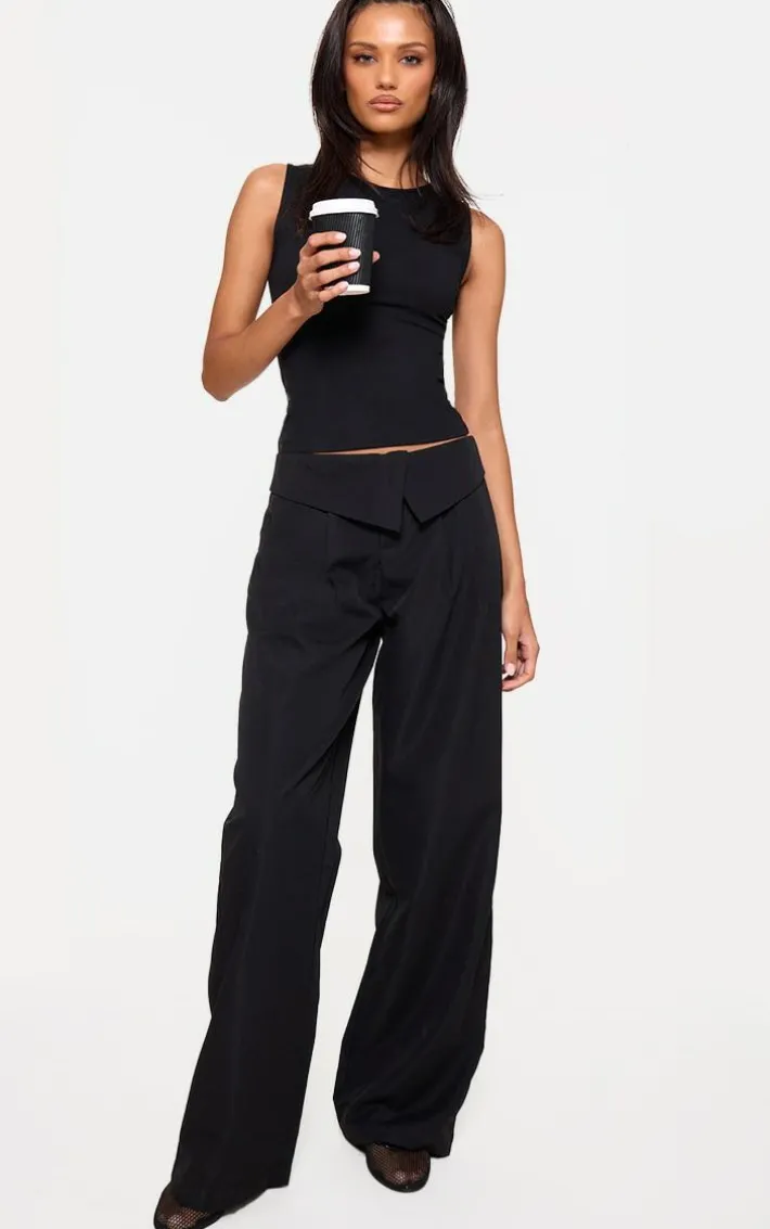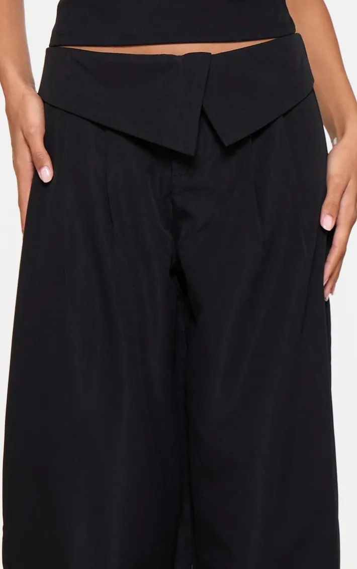 Your new season wardrobe is calling out for these black turnover waistband detail wide leg tailored pants. Brought to you in a black material with a turnover waistband detail and a wide leg fit, what more could you want doll? With a tailored fit, these pants are all you need to feel effortlessly chic. Team with your fave accessories and a basic tee to finish off the look we are loving.