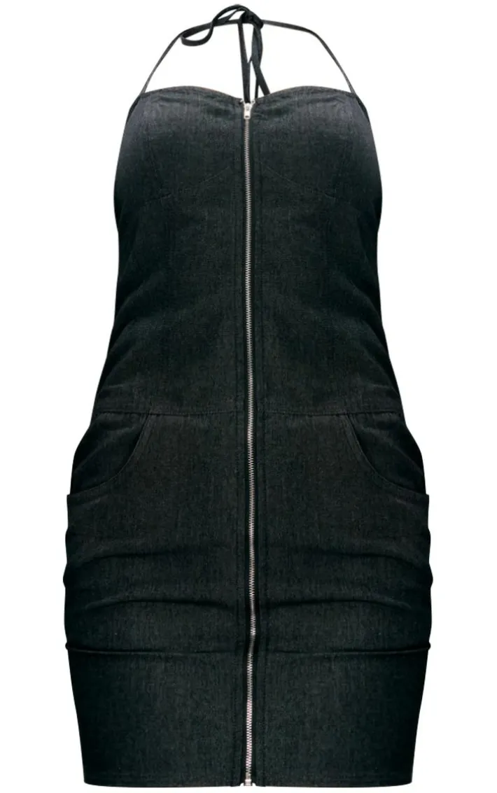 This black twill zip up pocket halterneck bodycon dress is here to solve all of your weekend wardrobe dilemmas. Brought to you in a black hue twill material with a zip up fastening, a halterneck design and pocket detailing, what more could you want? Perfect for dressing up or down to suit your plans, this bodycon dress is sure to be a staple in your new season wardrobe. Team with chunky boots and gold accessories for a look we are loving.